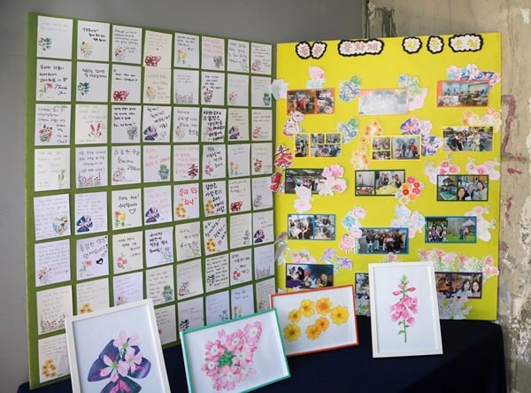 | ▲조각조각 이어진 들꽃 이야기가 전시되어 있다 [사진제공 = IWPG] |