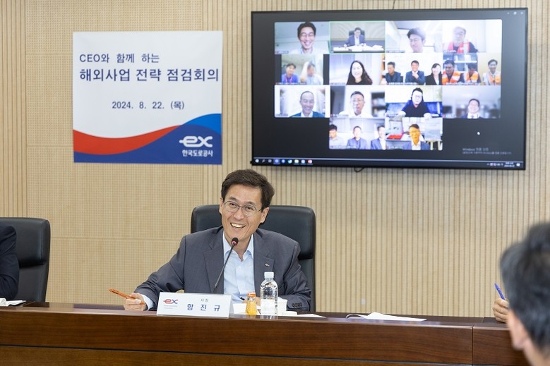 한국도로공사(사장 함진규)는 22일 한국도로공사 ex-스마트센터에서 함진규 사장 주재로, 방글라데시 등 해외 각지에 파견 중인 직원 전원과 화상 ‘해외사업 전략 점검회의’를 개최했다고 밝혔다.