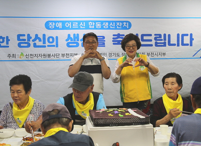 (사)경기도 장애인복지회 부천지회 회원들을 위한 합동생일 잔치는 장애인과 비장애인 간의 벽을 허물고 사랑으로 하나 되자는 취지로 시작됐다.