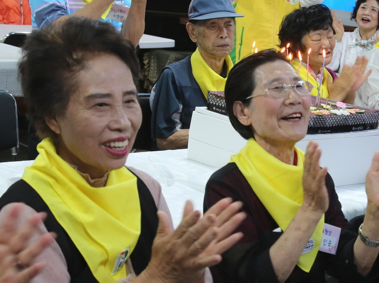 | ▲ 합동생일잔치에 참여한 장애어르신들의 단체사진 [사진 제공 = 신천지자원봉사단 부천지부] |