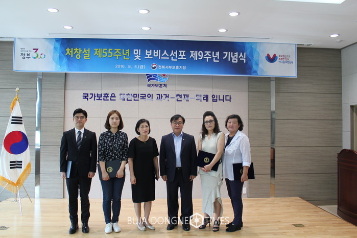 [전북=부자동네타임즈 이정술 기자] 전북서부보훈지청(지청장 이우실)은 5일(금) 청사 3층 대회의실에서 국가보훈처 창설 제55주년 및 보비스선포 제9주년을 맞아 전 직원이 참석한 가운데 기념행사를 가졌다.
