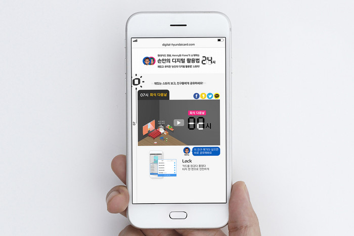 ‘손안의 디지털 활용법 24시’ 캠페인은 디지털 현대카드의 다양한 서비스를 일상 생활에 유익하게 사용할 수 있는 방법을 소개하는 디지털 커뮤니케이션 활동으로, 디지털 매체의 특성을 반영해 위트 있는 이야기로 풀어낸 것이 특징이다.