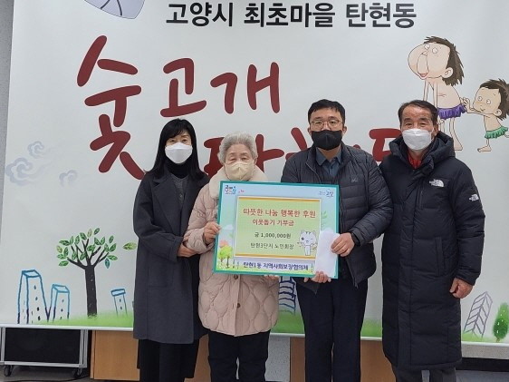 [부자동네타임즈 김인수기자] 고양특례시 탄현1동 행정복지센터는 탄현1동 3단지 노인회장(이임순)으로부터 관내 어려운 이웃들을 위해 써달라며 성금 100만원을 전달받았다고 밝혔다.