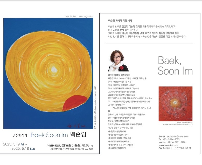 백순임 화백은 이번 전시회를 마치고 곧바로 5월 9일부터 5월 18일까지 예술의전당 한가람미술관 제 5,6전시실에서 전시를 하게 된다.