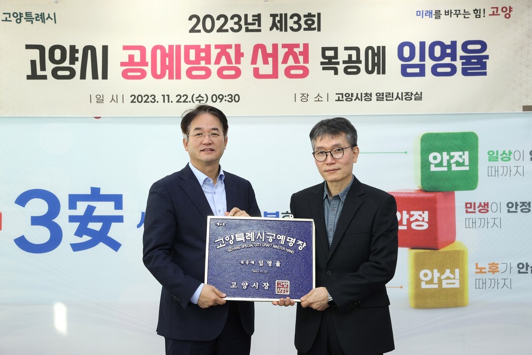 [부자동네타임즈 = 김인수 기자] ‘고양특례시 제4호 공예명장’으로 석일공예 대표 임영율 목공예가를 선정하고 11월 22일 시상식을 개최했다.