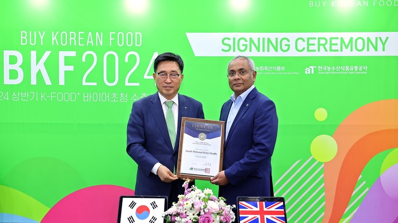 한국농수산식품유통공사(사장 김춘진)는 18일 서울 양재동 aT센터에서 카자흐스탄 최대 유통수입사 ‘신라인(SHIN-LINE GROUP)’ 신안드레이 회장과 영국 대형식품 바이어인 유니스낵(Unisnacks) 하이드 하니퍼 대표를 글로벌 저탄소 식생활 홍보대사로 위촉했다.