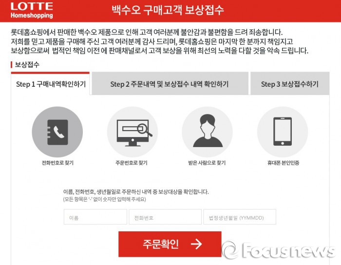 | △ 롯데홈쇼핑은 5월26일 백수오 보상 홈페이지를 열고 소비자 피해보상을 시작한다.<사진제공=롯데홈쇼핑 홈페이지> |