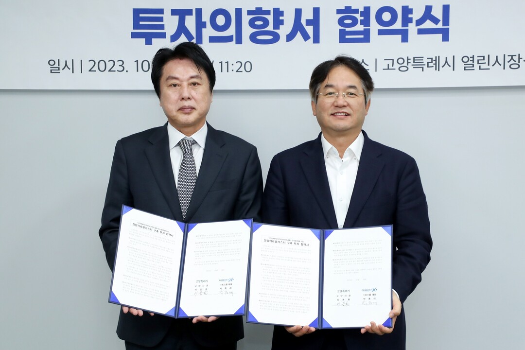 글로벌 자족도시를 지향하는 고양특례시와 세계 일류기업을 꿈꾸는 ㈜포스콤은 투자협약을 통해 고양시 산업단지 1번지인 고양경제자유구역 일산테크노밸리 내 국가첨단전략산업 바이오 특화단지 지정과 조성을 위해 국내외 의료기기 기업 유치에 상호 협력하기로 했다.