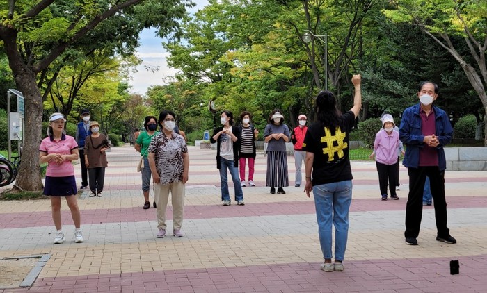 [사진설명] 공원 힐링체조.