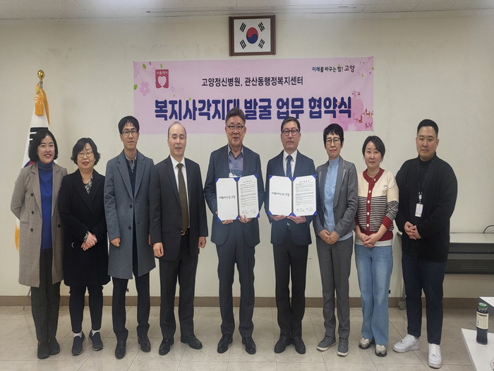 [부자동네타임즈 김인수기자] 고양특례시 관산동 행정복지센터는 지난 3월 9일 관내에 위치한 서울특별시 소속 고양정신병원과 지역의 복지사각지대를 발굴하고 마음건강을 돌보기 위한 업무협약을 체결했다.