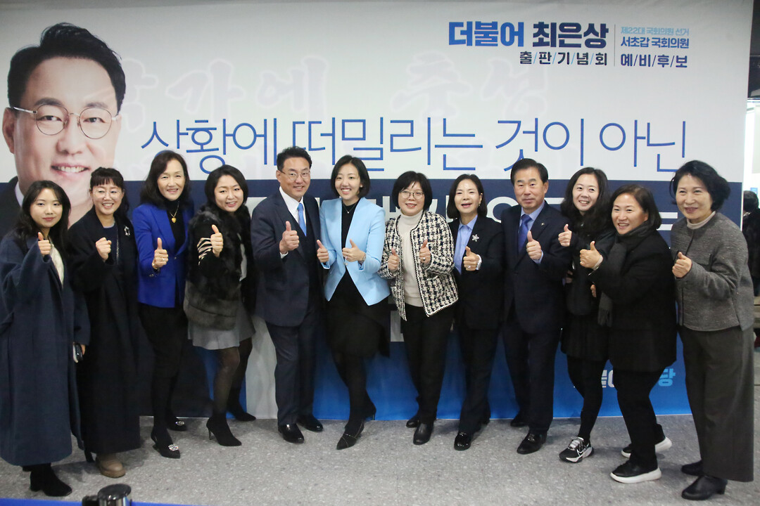 이날 추운 날씨에도 불구하고 책구매와 사진 촬영을 위해 줄을 서고, 축사와 축하하는 노래가 이어지며 열기가 가득한 현장에서 최은상 예비후보는 참석해주시고, 바쁜 일정으로 영상 인사말을 보내준 모든 분들에게 감사드리며 서초구민과 국민의 더 나은 삶을 위해 서초와 대한민국을 발로 뛰는 희망과 열정의 정치인이 되겠다는 인사말로 성황리에 마무리했다.