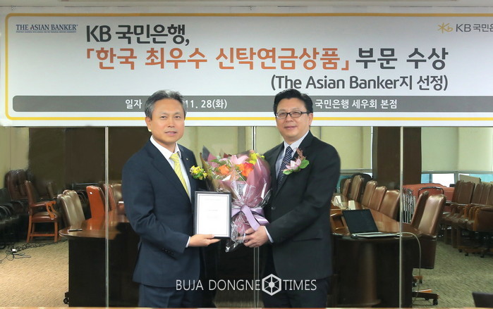 [부자동네타임즈 이현재 기자]KB국민은행은28일 싱가포르에 소재한 금융전문지인‘아시안뱅커(The Asian Banker)’지로부터「한국 최우수 신탁연금상품(The BEST Trust and Pension Product Award in Korea)」을 수상했다고 밝혔다.