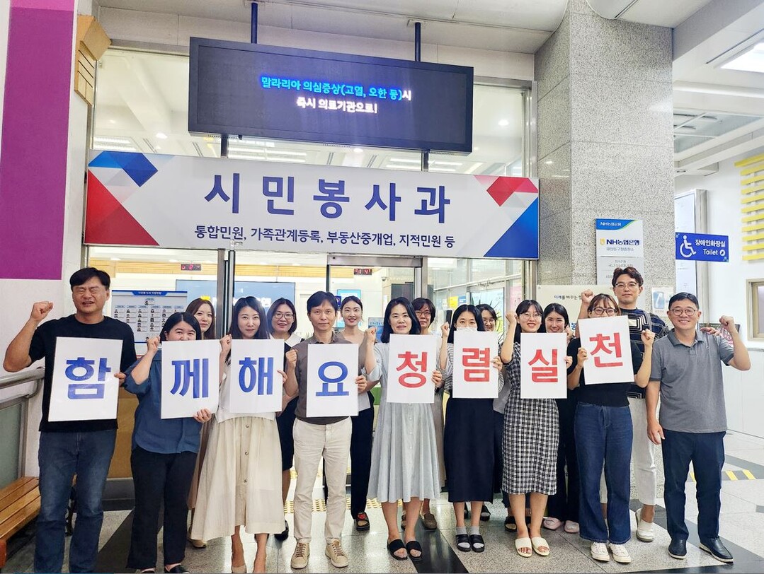 이 날 캠페인은 부정청탁, 금품수수 등 우리 사회의 잘못된 관행을 근절해 공정하고 투명한 조직 사회를 만들고, 공직자 및 구청을 이용하는 민원인들의 청렴에 대한 관심을 유도하고자 실시했다.