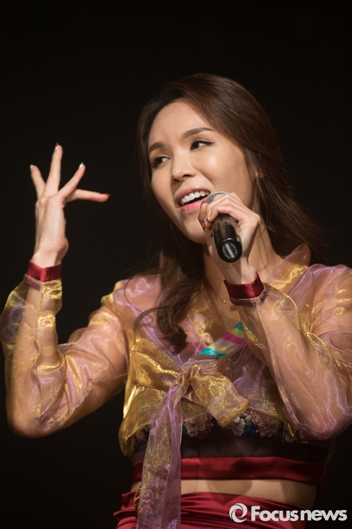(서울=포커스뉴스) 23일 오후 서울 마포구 롤링홀에서 가수 이순정이 싱글앨범 '찰떡' 발표 쇼케이스에 참석해 신곡에 대한 설명을 하고 있다. 이순정은 트로트 가수 김수희의 딸로 알려져 화제가 됬으며 1999년 써니로 데뷔후 16년 만에 컴백 무대를 가졌다.