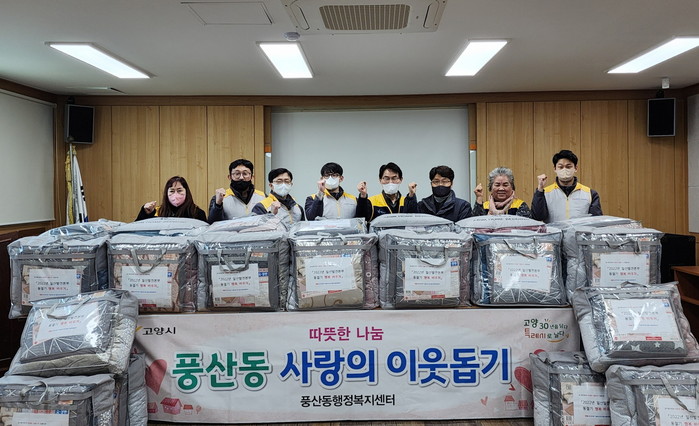 [부자동네타임즈 김인수기자] 고양특례시 일산동구 풍산동 행정복지센터(동장 홍재혁)에서는 지난 20일 한국동서발전(주) 일산발전본부로부터 전기요와 이불 40세트(350만원 상당)를 기탁 받았다고 밝혔다.