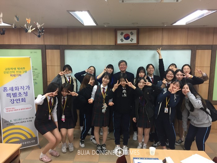 광주중앙도서관(관장 강성룡)이 12일 조선대학교여자고등학교 도서실에서 베스트셀러 도서 '나는 빠리의 택시 운전사'를 저술한 홍세화 작가를 초청해 시내 고등학교 학생 129명이 참여한 가운데 작가초청 강연회를 가졌다.