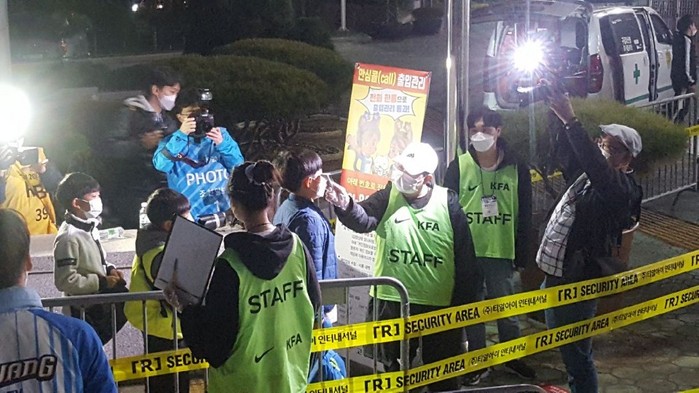 오후 5시 입장이 시작되기 전, 시민들은 설레는 표정으로 줄을 서서 유관중으로 진행된 올 첫 번째 축구경기 관람을 기다렸다. 입장객들은 발열체크, 고양시 안심콜 등록, 1인 2장씩 지급된 일회용 비닐장갑을 들고 경기장에 입장했다. 시는 감염차단에 만전을 기울였고, 대한축구협회는 3개 좌석을 건너 1개 좌석을 판매하는 등 철저한 거리두기가 될 수 있도록 관리했다.
