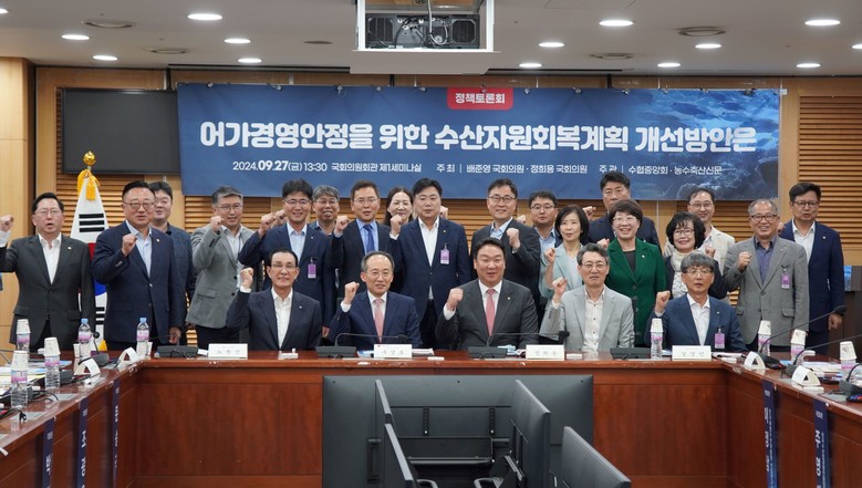 국회 행정안전위원회 소속 배준영 의원 ( 인천 중구 · 강화군 · 옹진군 ) 과 공동으로 주최 하고 수협중앙회와 농수축산신문이 주관한 이번 토론회는 현행 수산자원회복계획을 진단하고 문제점을 파악해 개선점 및 어업인 지원방안을 모색하기 위해 마련되었다 .
