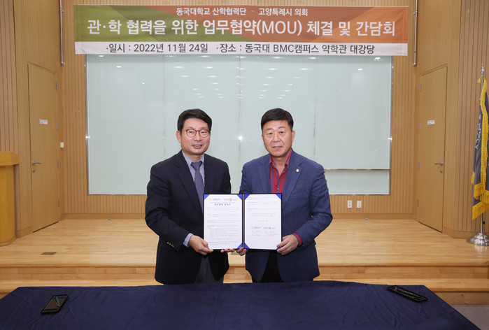 [부자동네타임즈 김인수기자] 고양특례시의회가 관학 협력을 통한 지역 활성화를 위해 11월 24일 오후 3시 고양시 소재 동국대학교(BMC캠퍼스) 약학과 대강당에서 동국대학교 산학협력단과 상호협력 협약을 체결하였다.