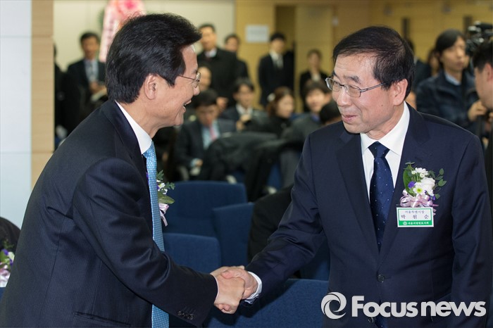 | △ 악수하는 박원순 시장과 천정배 의원 |