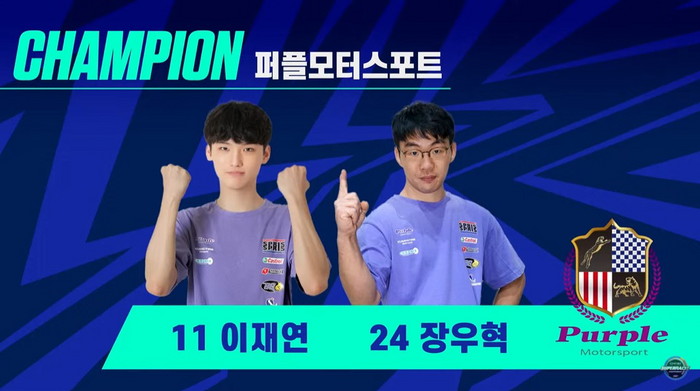 [사진설명] 2021 삼성화재 e슈퍼레이스 챔피언십 팀전 종합 우승을 차지한 퍼플모터스포트의 이재연과 장우혁.