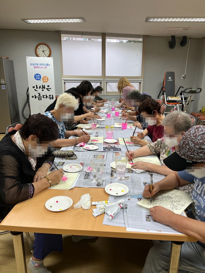 ‘인생은 아름다워’ 는 어르신을 위한 치매예방 인지미술 활동과 노래교실을 운영하는 사업으로 관내 공동주택 경로당에서 주1~2회 운영하고 있으며 사회적 협동조합 인성소통협회 소속 강사진의 재능기부로 진행되고 있다.