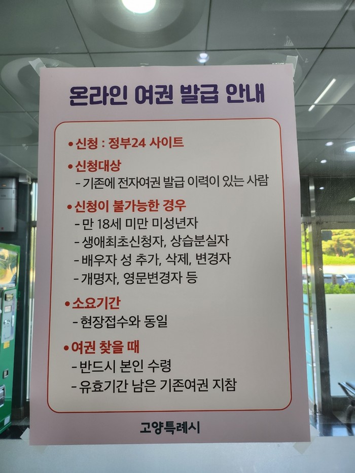 고양시는 덕양여권민원실과 일산여권민원실 2개소에서 외교부 여권업무를 대행해 운영 중으로 매주 목요일에는 직장인들을 위해 오후 8시까지 연장 운영하고 있다.