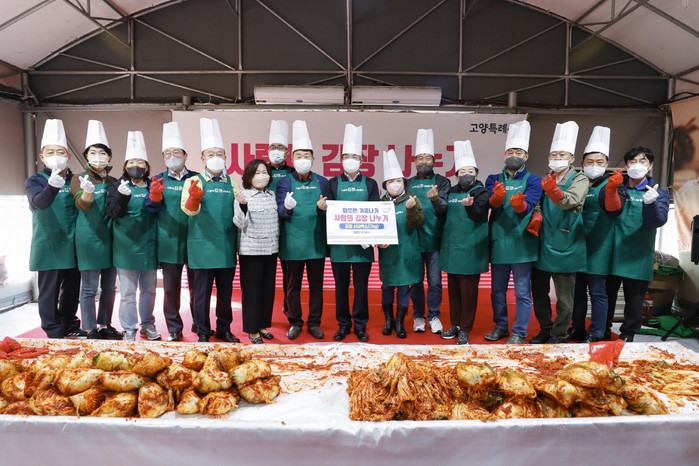 [부자동네타임즈 김인수기자] 고양특례시(시장 이동환)는 지난 24일 (사)한국농업경영인 고양시연합회가 ‘사랑의 김장 김치 나눔’ 행사를 가졌다고 밝혔다. 이날 담근 사랑의 김장 김치는 고양시 사회복지협의회에 기탁해 9개 복지관을 통해 관내 저소득층 노인과 다문화가정에 지원됐다.