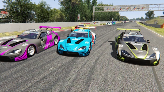 [사진설명] 2020 CJ대한통운 e슈퍼레이스 정규리그 최종전이 열린 20일, 10라운드 결승전에서 김영찬, 김규민, 이상진(오른쪽부터)이 1위 자리를 차지하기 위해 치열하게 경쟁하고 있다.