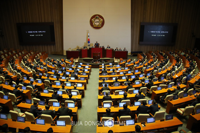 [부자동네타임즈 이채봉 기자]박근혜 대통령에 대한 탄핵소추안이 9일 탄핵 가결 정족수(200석 이상)를 훌쩍 뛰어 넘는 234표의 압도적 찬성으로 국회를 통과했다.