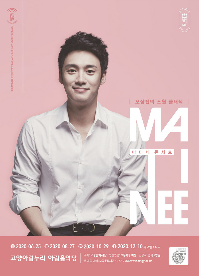<2020 아람누리 마티네콘서트>는 6월 25일(목), 8월 27일(목), 10월 29일(목), 12월 10일(목) 등 연중 4차례에 걸쳐 오전 11시에 고양아람누리 아람음악당에서 펼쳐진다. 당초 4월 첫 공연 예정이었으나, 신종 코로나19 바이러스 감염 방지를 위해 4월 공연을 12월로 옮겨 진행함으로써 시민들의 건강과 문화향유를 모두 지킨다는 방침이다.