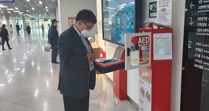 이번 점검에서는 자동심장충격기 설치 및 관리지침에 따라 작동상태 및 위치안내 표시, 보관상태, 관리자 지정 및 교육 이수 여부, 매월 자체 점검 현황 등을 확인했다.