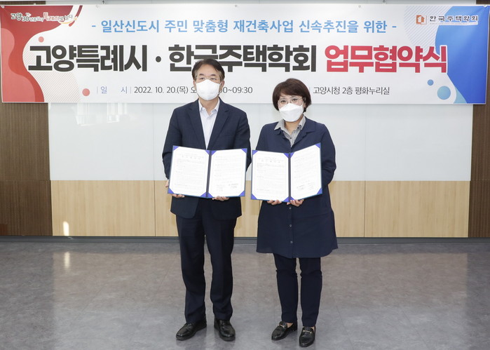 이날 협약식은 이동환 고양특례시장, 김덕례 한국주택학회장, 국토부에서 선임한 김준형 일산 총괄기획가(MP, 명지대 교수)도 함께 참석한 가운데 열렸다.