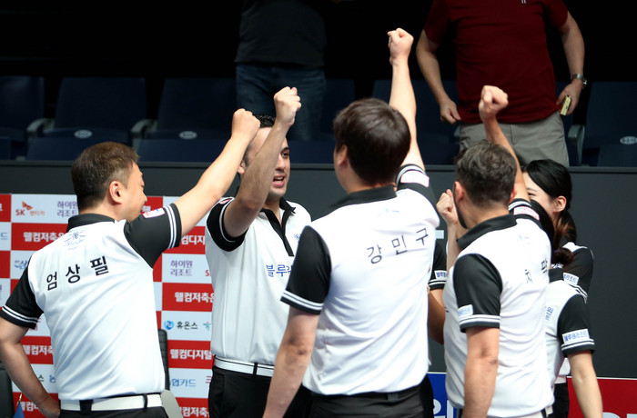 [부자동네타임즈 김인수기자] 지난 16일 경기도 고양시 ‘고양 킨텍스 PBA 스타디움’에서 열린 ‘웰컴저축은행 PBA 팀리그 2023-2024’ 2라운드 1일차 경기서 블루원리조트는 하나카드에 세트스코어 4:2, 웰컴저축은행은 휴온스와 풀세트 접전 끝에 세트스코어 4:3 승리를 챙겼다. 1라운드 최하위로 내려섰던 블루원은 이날 승리로 5연패를 마감했고, 1라운드 공동7위 웰컴저축은행도 2라운드 첫 경기서 짜릿한 역전 승리로 쾌조의 스타트를 끊었다.