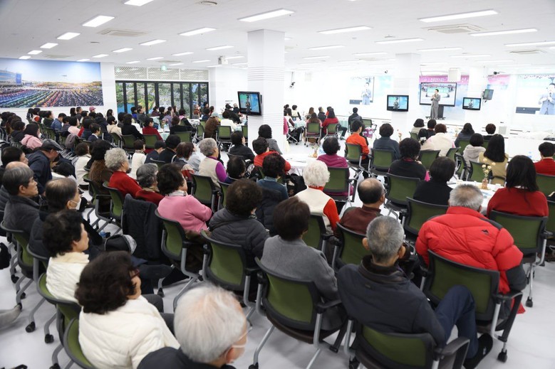 지난 15일 신천지 익산교회에서 열린 ‘신천지는 사랑을 싣고’라는 강연을 듣고 있는 초청자들의 모습.