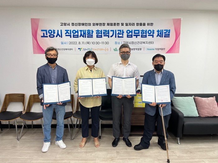 [부자동네타임즈 김인수기자] 고양특례시(시장 이동환) 정신건강복지센터가 정신질환자의 일자리 창출 및 고용유지를 위해 지난 11일 장애인 직업재활시설과 업무 협약을 체결했다.
