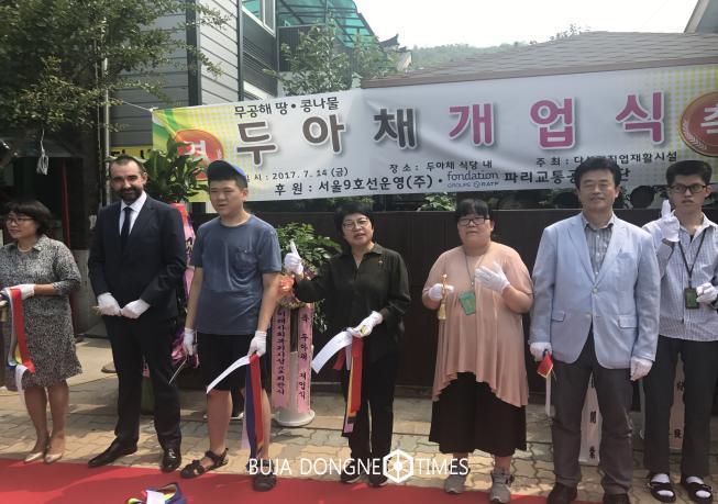 [부자동네타임즈 이채봉 기자]서울시의회 환경수자원위원회 한명희 의원(더불어민주당·강서4)은 지난 14일 서울9호선운영(주)와 프랑스 파리교통공사 재단이 후원하고 다사랑직업재활시설에서 운영하는 무공해 땅·콩나물 국밥집‘두아채’개업식에 참석하였다.