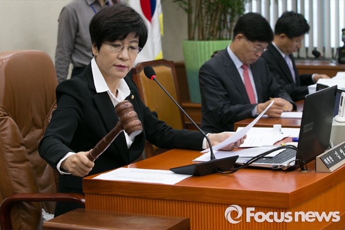 (서울=포커스뉴스) 16일 오전 서울 여의도 국회 환경노동위원회 전체회의장에서 김영주 위원장이 의사봉을 두드리고 있다. 이날 환노위 전체회의에서는 정부 여당의 하반기 핵심 국정과제인 노동개혁 5대 법안을 상정해 논의한다.
