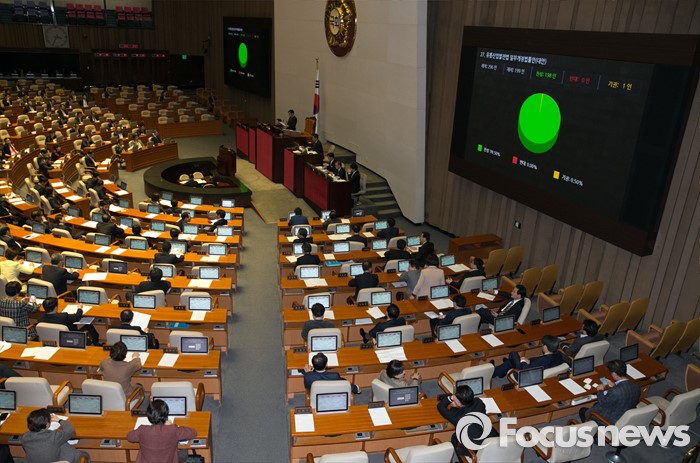 (서울=포커스뉴스) 12일 오후 서울 여의도 국회에서 열린 337회 국회(정기회) 11차 본회의에서 유통산업발전법 일부개정법률안(대안)이 찬성 198인, 기권 1인으로 통과되고 있다.