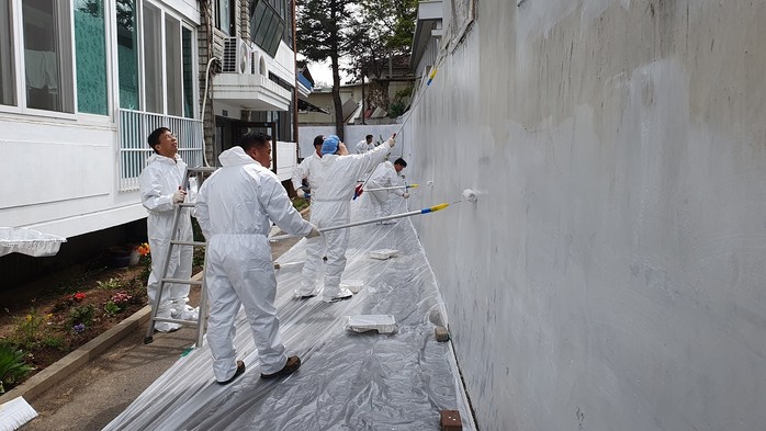 이번 활동에서 경로당 외벽은 경로당 지원 사업으로 개보수를 진행했다. 특히 경로당과 마주한 빌라 외부담장은 사유지여서 공공지원이 어려워, 구는 입주자대표회, 고양시 한울봉사회와 협의하여 빌라 담장 외부 도색을 위한 페인트, 롤러 등 재료와 장비는 입주자대표회에서 부담하고 일산서구청 직원들과 한울봉사회에서 페인트칠 자원봉사를 진행했다.