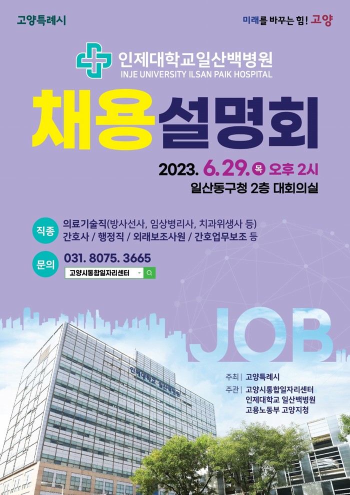 한편, 시는 지난 5월에 고양시 의료기관 일자리 릴레이 채용설명회1탄을 열고 국민건강보험공단 일산병원의 채용을 지원했다.