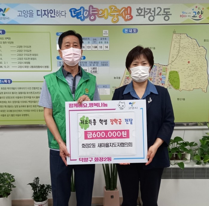 [부자동네타임즈 김인수기자] 고양특례시 화정2동 행정복지센터(동장 김현정)는 지난 11일, 화정2동 새마을지도자협의회(회장 황록연)가 관내 어려운 가정을 위한 장학금 60만원을 전달했다고 밝혔다.