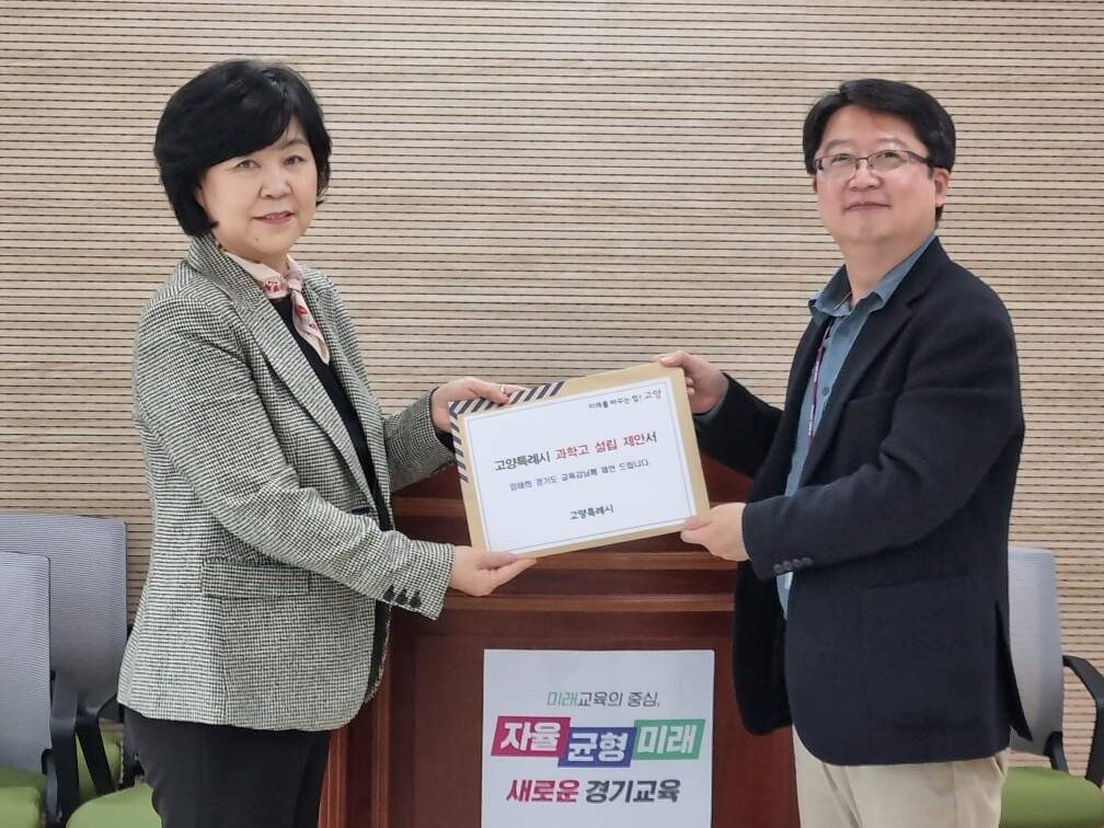 제안서 전달식에는 고양시 특목고 설립위원회 위원으로 활동 중인 심홍순 경기도의원, 엄성은 고양시의원과 관내 학부모 대표가 참여했다.