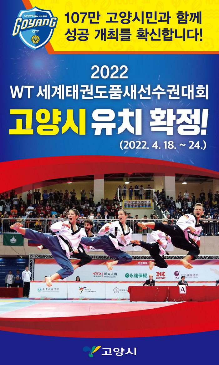 [부자동네타임즈 김인수기자] 고양시(시장 이재준)가 2022년 열리는 WT 세계태권도품새선수권대회 유치를 확정했다. 한국에서 열리는 것은 15년 만으로 북한 태권도시범단 및 개도국 선수단을 초청할 계획이다.