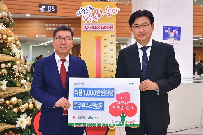 풀무원푸드앤컬처는 지난 15일 서울시 송파구 신천동 송파구청에서 이우봉풀무원푸드앤컬처 대표와 박성수 송파구청장 등이 참석한 가운데 어려운 이웃을 위한 ‘희망온돌 따뜻한 겨울나기’ 모금사업 후원 물품을 기탁했다고 17일 밝혔다.