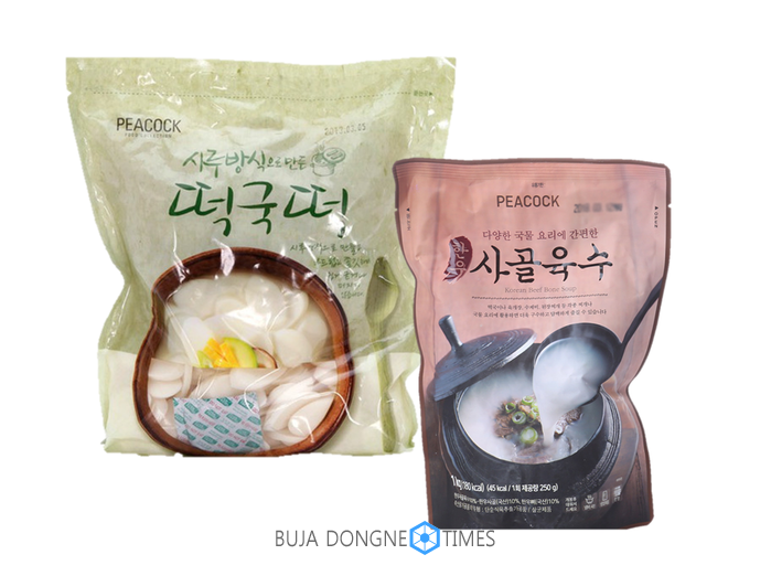 오는 1월2일(수)까지 가족들과 함께, 혹은 혼자서도 간편하게 조리 가능한 피코크 떡국떡 4종과 육수 3종을 동시구매시 20% 할인한다.