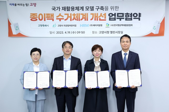한편 고양시는 고양 재활용가게 운영, 온실가스 감축량이 표시된 재활용 전용 투명봉투 보급, 자원순환활동가 활동 등을 통하여 지난해 종이팩 354톤을 재활용하는 데 성공했다.