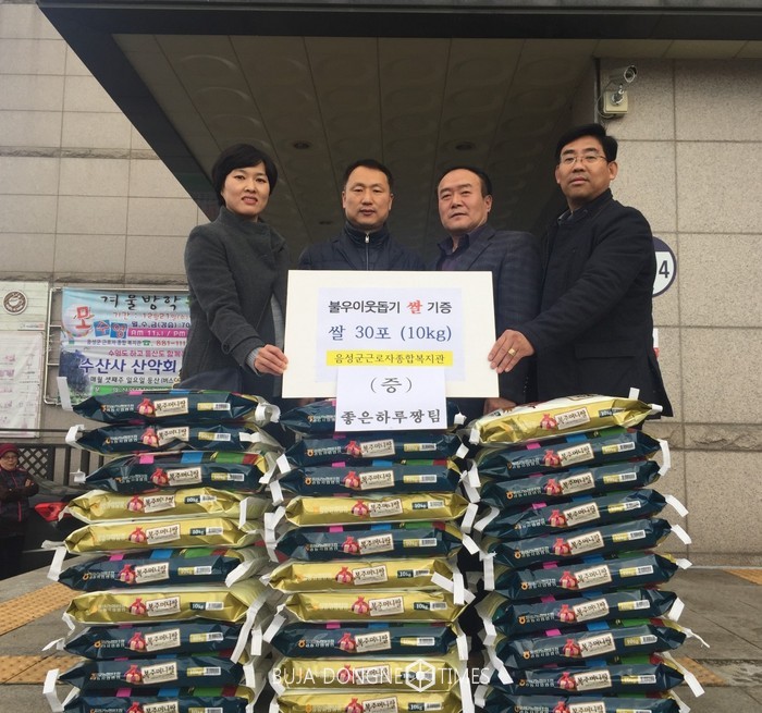[부자동네타임즈 이현진 기자]음성군 대소면은 지난 13일 좋은아침짱 수영동호회(회장 권순영)가 어려운 이웃에게 전해달라며 60만원 상당의 쌀(10kg, 30포)을 기탁했다고 밝혔다.