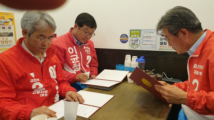 [부자동네타임즈 김인수기자] 국민의힘 고양시장 경선후보로 선정된 이동환ㆍ김종혁ㆍ이균철 예비후보가 공정한 경선을 위한 ‘신사협정’을 맺었다.