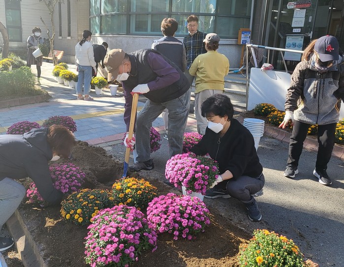 또한 한철희 동장은 “국화를 통해 계절의 변화를 알리고 우리 행정복지센터를 방문하는 시민들께 조그마한 휴식의 공간을 마련해 줄 수 있어서 뿌듯하며 식재 행사에 함께 해주신 모든 분들께 감사드린다.”고 말했다.